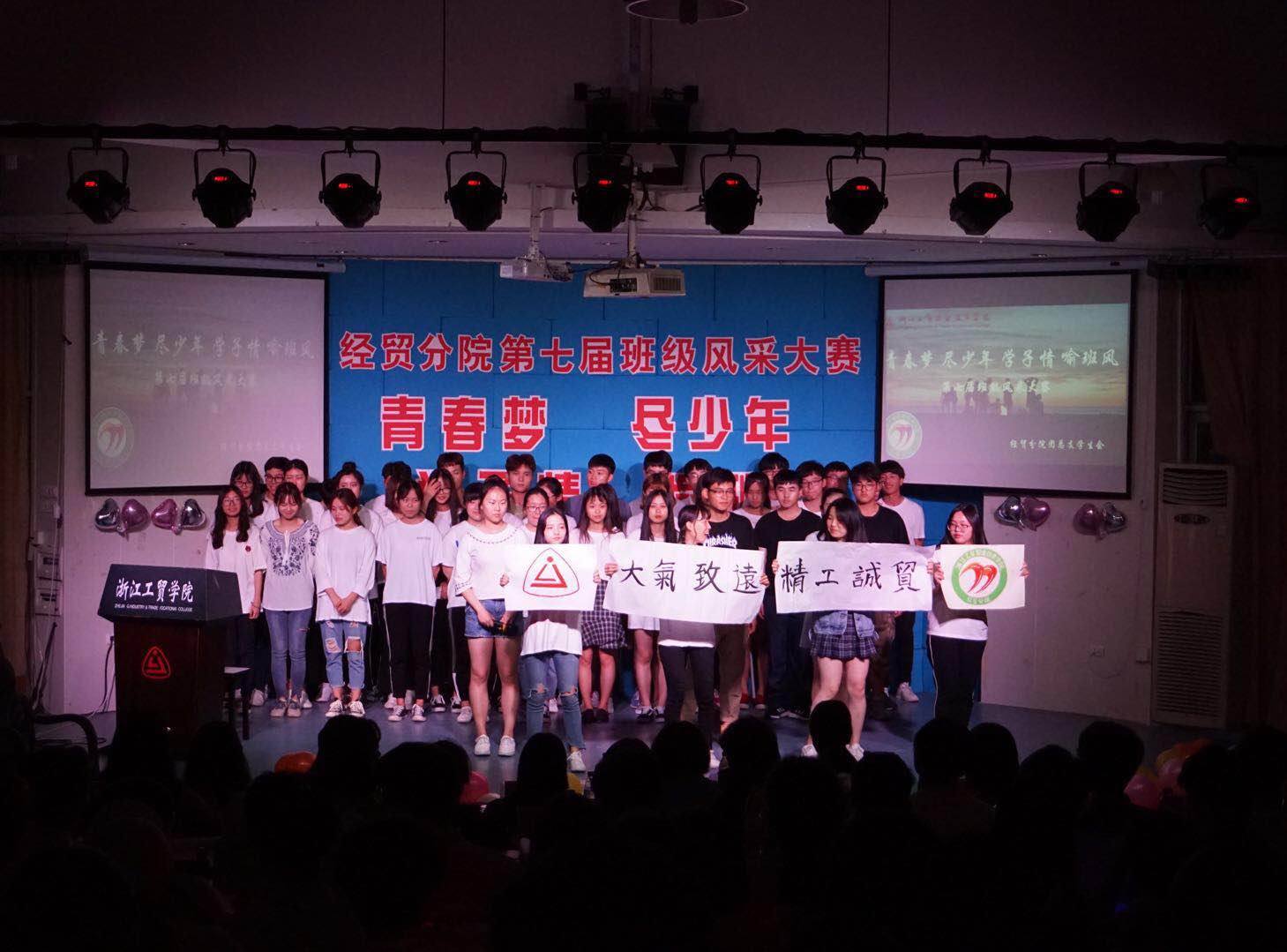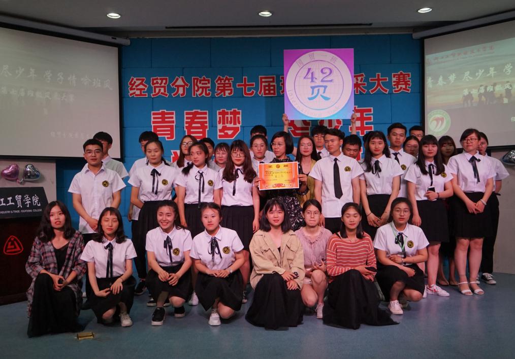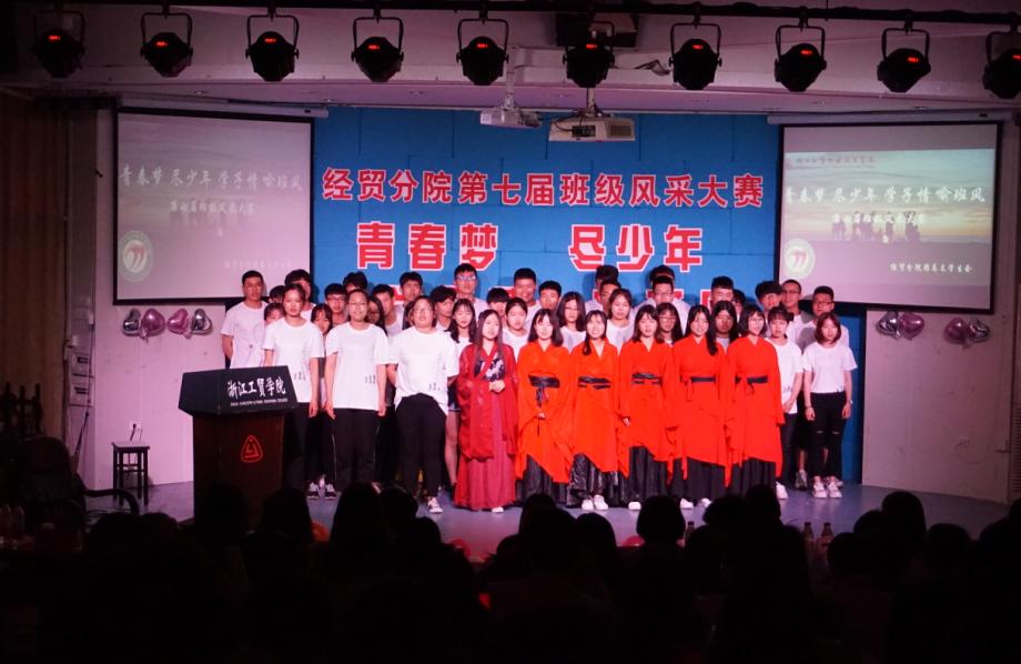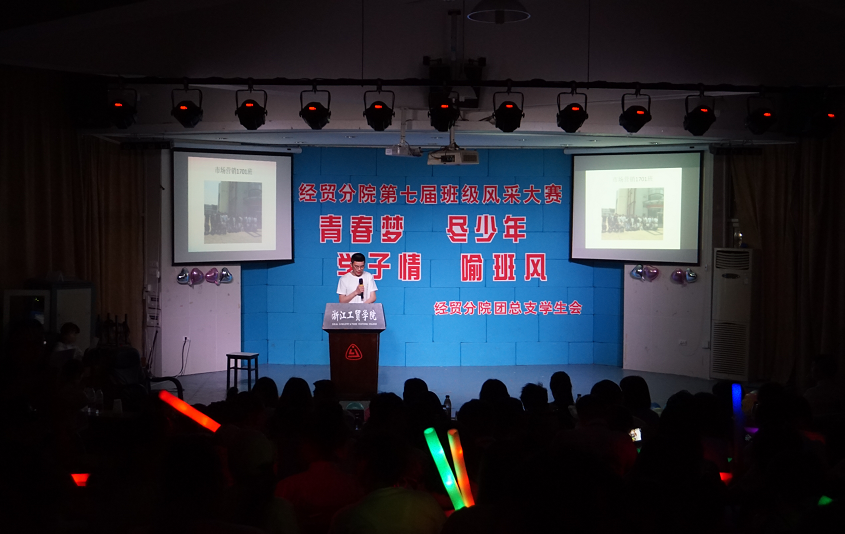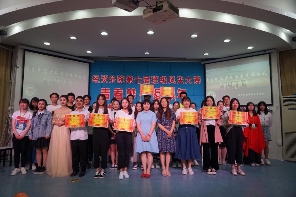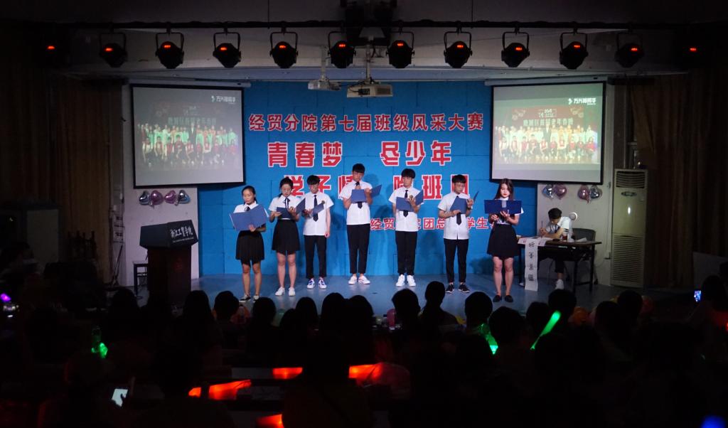 为增强班级凝聚力、向心力,营造班级积极进取,向上向善的青春风貌,加强班级间的交流互动,5月2日晚以“青春梦、尽少年、学子情、喻班风”为主题的经贸分院第七届班级风采大赛在阶梯教室隆重举行。经贸分公司党总支书记张勰,心理健康白毓秀老师、院团委张慧老师,分院辅导员向政、郑雪琦、吴妮妮,员工代表吴凌鸣、严露霞、张丹、丁凯丽及各班班主任,共计400余人参加此次活动。