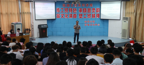 为推进校园文化建设,引导员工重视并传承瓯越文化,5月23日,经贸分院在阶梯教室成功举办了以“传工贸特色 承瓯越灵韵 品文化清香 塑工贸精神”为主题的瓯越文化系列讲座。出席此次讲座的主讲嘉宾有区域文化研究中心郑央凡大师和王春红博士,经贸分公司党总支书记张勰,辅导员吴妮妮以及经贸分院员工300余人参加了本次活动。