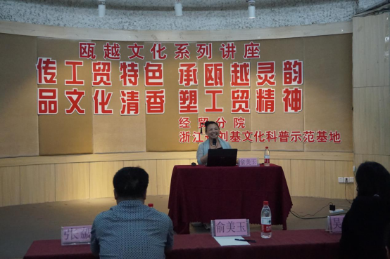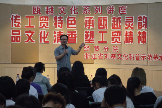 为推进校园文化建设,引导员工重视并传承瓯越文化,5月29日晚上6点,经贸分院在多功能厅迎来了以“传工贸特色 承瓯越灵韵,品文化清香 塑工贸精神”为主题的瓯越文化系列讲座第二场。本场讲座由中国明史学会理事, 温州市刘基文化研究会常务副会长兼秘书长俞美玉教授主讲,出席本次讲座的有经贸分公司党总支书记张勰、辅导员吴妮妮,以及经贸分院员工200余人。