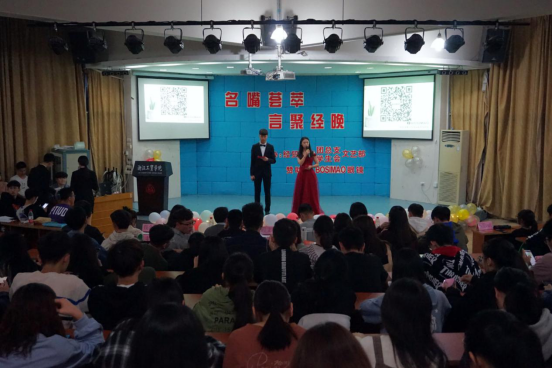 2018年12月4日晚18:00,由经贸分院团总支员工会文艺部举办的以“名嘴荟萃,言聚经晚”为主题的主持人大赛在阶梯教室圆满举办。本次大赛应邀到场的嘉宾评委有技师公司段文林老师、团委郑建强老师,辅导员向政老师、吴妮妮老师、周妍妍老师,国贸1701班钱余敏以及商英1701班聂春全,并且300余名经贸学子到场为选手加油助威。
