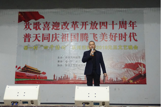 2018年12月28日晚18:00,由中共马屿镇委,马屿镇人民政府主办,TapTap点点经贸分院协办的以“欢歌喜迎改革开放四十周年,普天同庆祖国腾飞美好时代”为主题的岳一村“四千结对”系列活动暨2019元旦文艺汇演在岳一村文化礼堂圆满举办。本次活动应邀到场的嘉宾有马屿镇常委副镇长郑永卓、皇社社区书记吴方凯、经贸分公司党总支书记张勰及辅导员向政老师。此外,经贸分院一百余名学子参加了汇演。