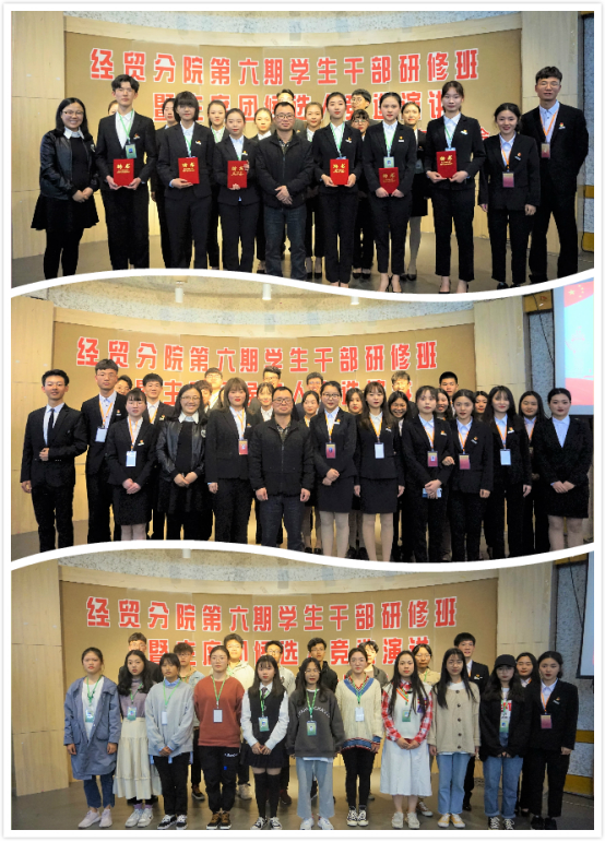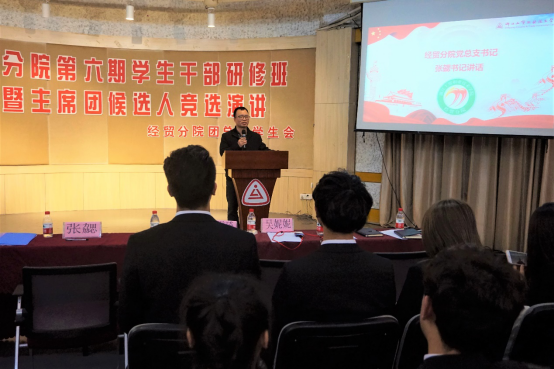2019年3月28日晚18:00,经贸分院团总支员工会于多功能厅成功举办了经贸分院第六期员工干部研修班暨助理团候选人竞选大会。经贸分公司党总支书记张勰,辅导员向政、郑雪琦、周妍妍、吴妮妮,员工会主席朱凯、团总支副书记钱余敏、17级团总支副书记丁凯丽,经贸分院团总支员工会代表以及班级员工、团员代表参与了此次活动。