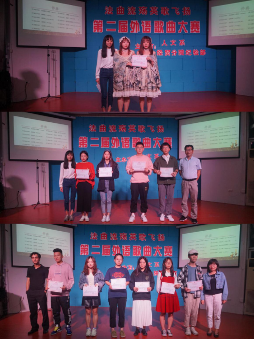 经过激烈的角逐,经贸分院国贸1902班的朱宝璐同学,人文系应用法语1801班的陈乐怡组荣获外语歌曲大赛的一等奖。