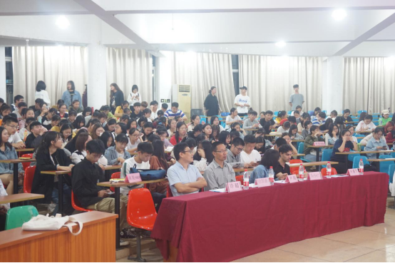 11组同学的精彩演唱完后是轻松愉悦的游戏环节,击鼓传花的游戏瞬间把现场的气氛带到了高潮,一时间欢笑声、玩闹声充斥着整个阶梯教室。