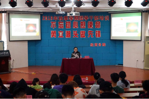 为深入学习贯彻习近平新时代中国特色社会主义思想,进一步提升公司员工干部的政治觉悟及职业素养,11月17日早上8:30,经贸分院于阶梯教室迎来了以“不忘初心担使命,勇立潮头做先锋”为主题的第二期团学干部培训。此次培训由马克思主义公司副教授郭薇,经贸分院辅导员吴妮妮主讲,此外,经贸分院全体班团干部参加了此次培训。