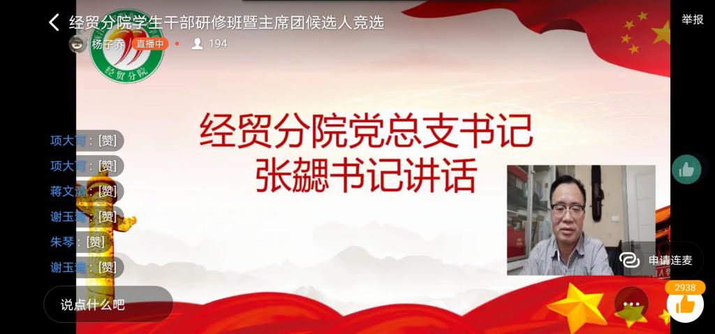 12位同学依次演讲结束后,张勰书记做了精彩的总结发言。首先,张书记对候选人的自身素质、准备情况与演讲内容进行了充分肯定;其次,书记指出现阶段还处于疫情防控的关键时期,希望大家对线上的选举模式产生思想上的高度认同;最后书记勉励所有竞选者,坚定个人理想,抓住机会,不断挑战自己。