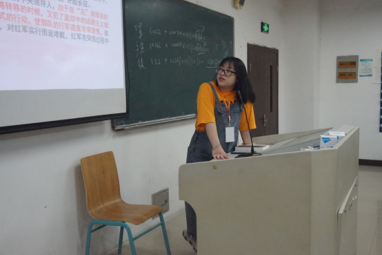 首先金小荣用几张图片带我们观摩了当年的会址,跟同学们解释了此次遵义会议的起因和背景。让同学们见证了那一段党的艰难历史,客观的评价了当时党中央领导人在第五次反围剿和长征初期所犯的“左”倾错误和逃跑主义错误。但在毛泽东同志的带领下红军改变方向攻克黔北重镇遵义,由此举行了这次影响深远的“遵义会议”。
