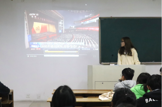 紧接着,团总支副书记就《决胜全面建成小康社会,夺取新时代中国特色社会主义伟大胜利》报告进行了详细的介绍和总结。习主席在报告中明确提出中国共产党人的初心和使命,就是为人民谋幸福,为中华民族谋复兴,正确认识党和人民事业所处的历史方位和发展阶段。在她讲解下,我们一步一步地加深了对党的了解,也更体会到了党在我们历史阶段中所起的关键性作用。