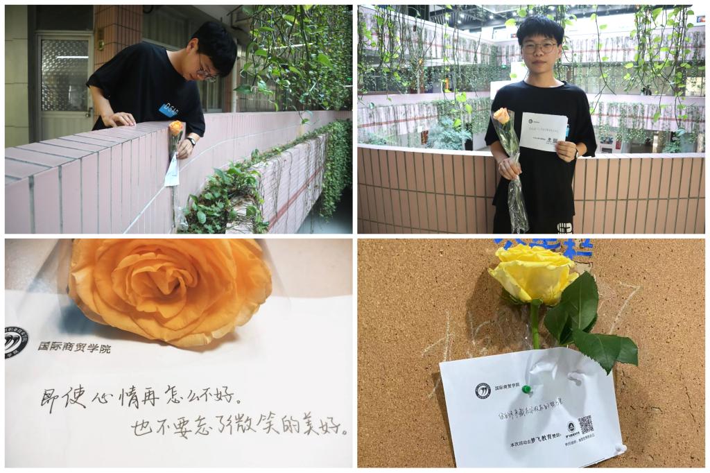 活动开始后,同学们化身“小侦探”,纷纷踏上了“寻花”的路途。每一次与鲜花的邂逅,都藏着暖心的寄语卡片,留下无数美好回忆,让他们充满了惊喜和期待。寻花成功的同学纷纷晒出合照,分享自己寻花的喜悦,与心灵寄语偶遇的触动。一句句暖心的寄语也舒缓了同学们的情绪,微笑面对生活!