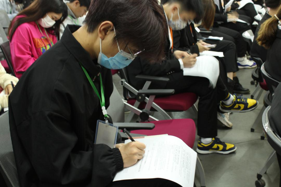 颁奖结束,团副周琳垚组织干事们阅读并填写员工干部作风建设管理规定,使每位同学都深刻了解如何才能做好一名合格的员工干部。