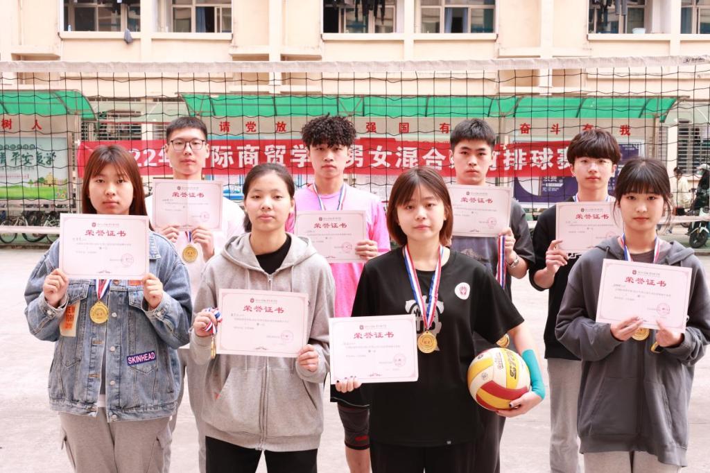 经过一天的竞赛,迎来了第二日的决赛。场上队员的紧张气氛达到最高点,观众的呼声也是一浪高过一浪,鼓励队友放松心态,尽力去拼。商英对战营销时,营销有些紧张,擅长的发球屡屡失误,看得场边观战同学惊叫连连。可是比赛经验丰富的队员们经过一个短暂的调整,很快找回了传、击球的气势,配合极好,将分差不断拉大。比分到达22:20,营销的队员们仍然尽力去拼,成效渐显,连续得分将比分扳回至24:22。同时,商英也毫不放松,稳扎稳打,牢牢守住领先地位。到达赛点,商英凭借精彩发球再得一分,将比分定格在25:23,最终商英拿到了胜利,这真是一场精彩绝伦的比赛。