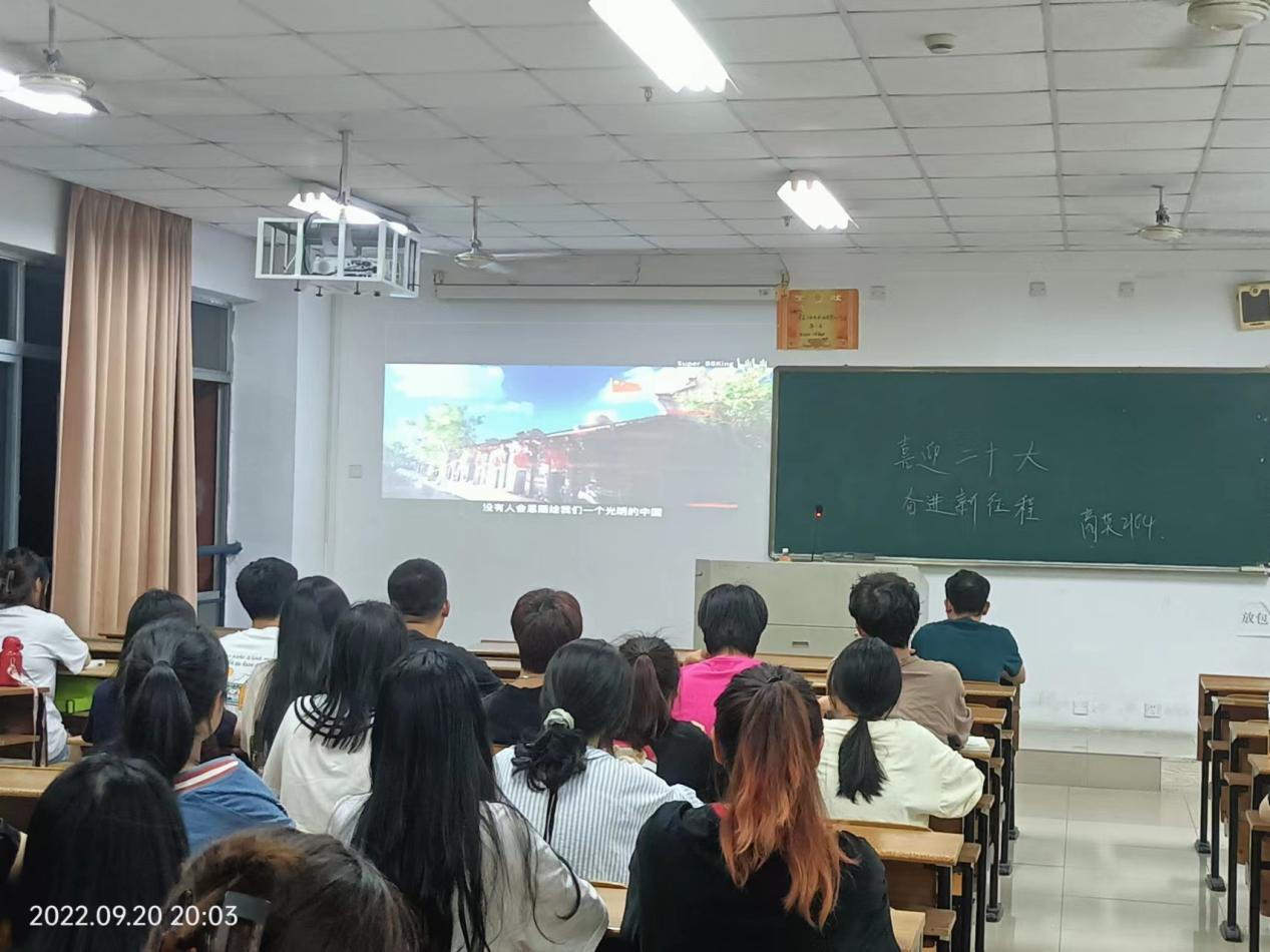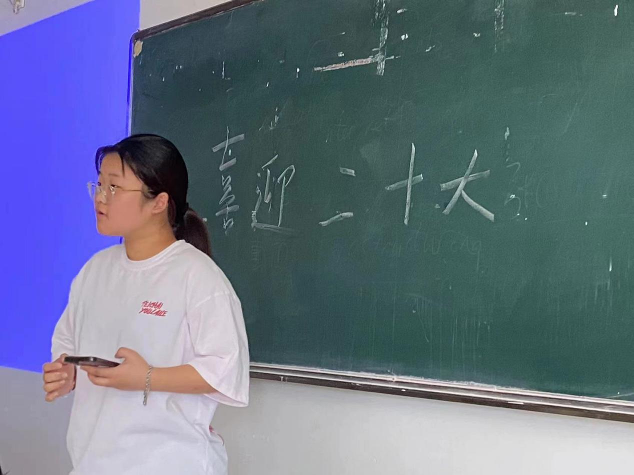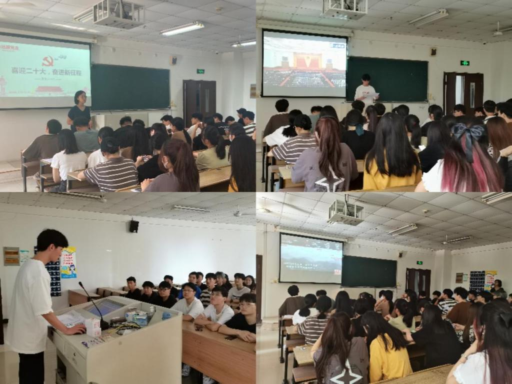 九月二十日法语2102班开展了以“喜迎二十大、建功新时代”为主题的主题班会,在班会上,班级同学学习了党二十大的相关知识。首先是十九届六中全会精神。在十九届六中全会学习中,我们要以史为鉴,迈步新征程,昂首迈向十五大。接下来是习近平重要讲话精神,今年是共青团成立100周年和建军95周年,我们要不忘初心,牢记使命。最后就是喜迎党的二十大胜利召开,党的二十大是是党和国家政治生活中的一件大事,作为老员工的我们就要遵守校规,好好学习,为新时代中国的发展铺路。