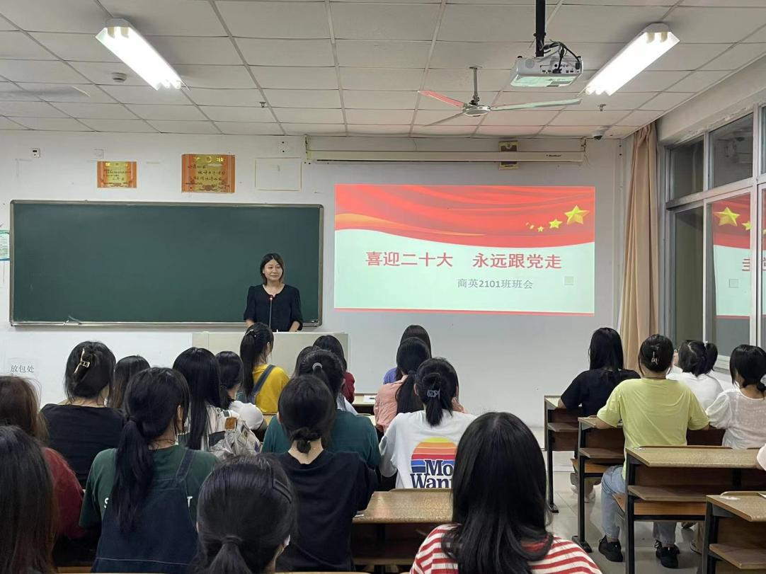商英2101班开展了关于“喜迎二十大,永远跟党走”的主题班会,通过这次班会,班级全体同学收获颇多。通过深度学习了解了十九届六中全会重点内容,包括四个伟大成就,党和国家事业取得的13个方面历史性成就以及实现第二个百年奋斗目标的“4个必须”等等。他们认识到召开党的二十大的重要定位,党的二十大是我们党进入全面建设社会主义现代化国家、向第二个百年奋斗目标进军新征程的重要时刻召开的一次十分重要的代表大会,是党和国家政治生活中的一件大事。