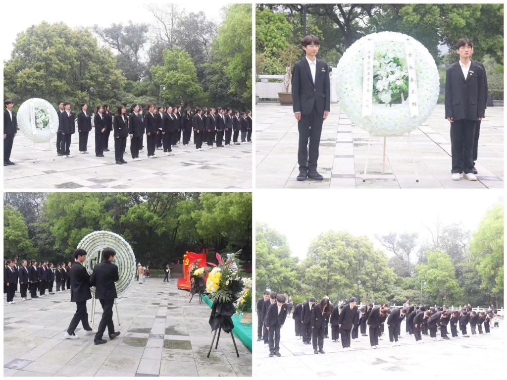 活动在全体师生齐唱国歌中拉开帷幕。大家怀着沉重的心情来到革命烈士纪念碑前敬献花圈并肃立默哀,三次鞠躬致以深深敬意和哀悼之情。