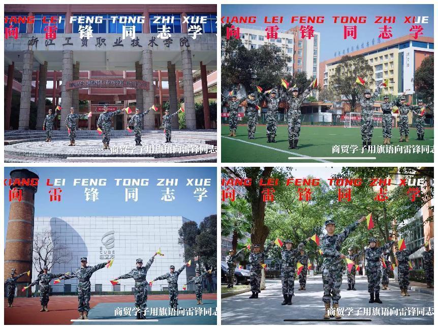 3月4日艳阳普照的正午,商贸退役学子身着迷彩、军姿笔直,双手有力地挥舞着旗帜,用旗语向雷锋同志致敬。此次活动不仅激发了同学们对雷锋的敬佩之情,坚定了向雷锋同志学习的决心。