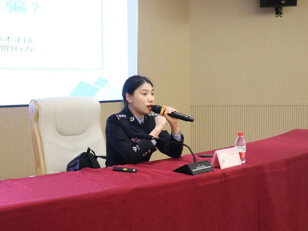 陈乐乐警官首先给同学们普及电信诈骗是指以非法占有为目的,利用电信网络技术手段,通过远程非接触等方式,诈骗公私财物的行为。警官通过一个一个的真实案例,用通俗易懂的语言,讲解防诈骗知识与技巧,同时以案释法,选取“冒充公检法、平台投资、游戏账号买卖”等针对高校人员多发、高发的电信网络诈骗案例。深度剖析遭遇了电信诈骗的危害。认识到电信诈骗并不是只会出现在年龄高的身上,同样电信诈骗不会离我们太远。