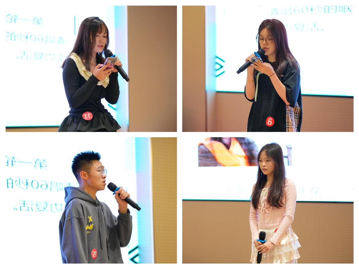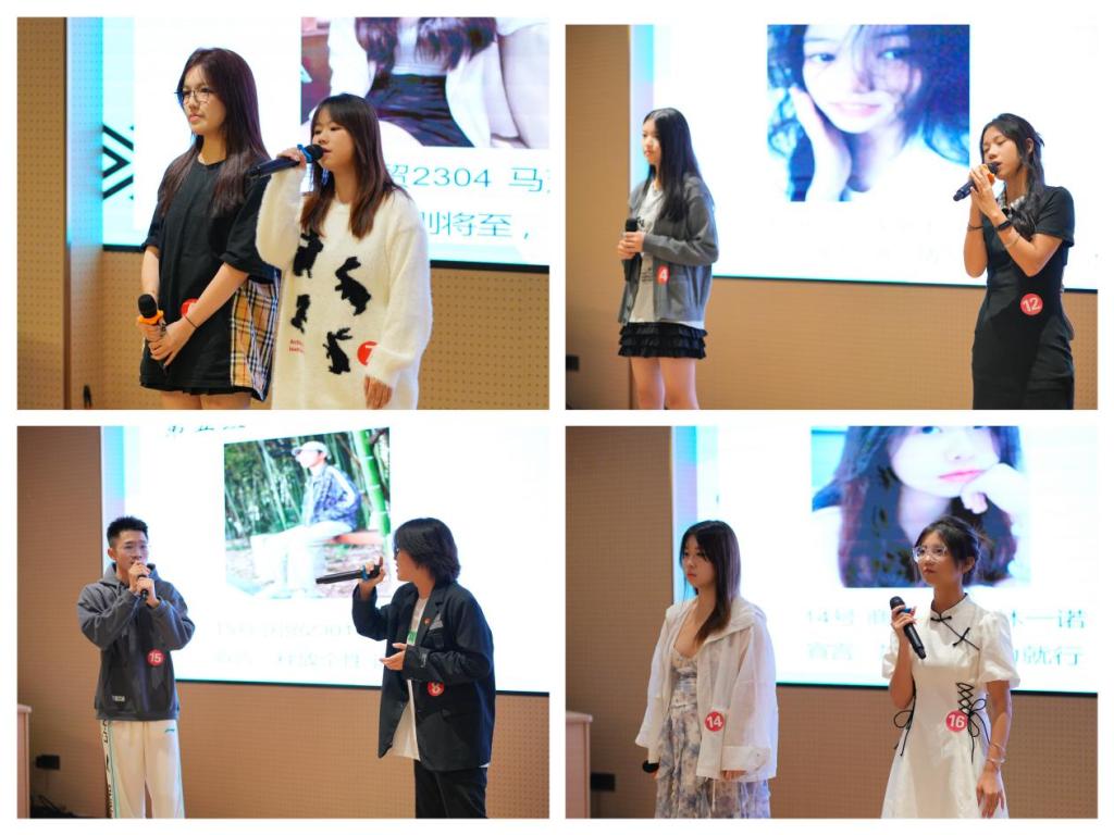 总决赛在文艺部同学们精彩的开场舞中拉开帷幕,紧接着来到第一环节,从海选中脱颖而出的16名选手两两合作演唱,前8名进入第三轮决赛,落后的8名则进入第二环节的复活赛。这不仅要考验个人的唱功,还要考验与队友的配合。6号国贸2304马萧侠和7号商数2202覃婉琪的《至少还有你》将情感融入歌声;4号商英2304廖玉可和12号国贸2101李艳婷的《淋雨一直走》唱出了青春的勇气与坚毅;15号国贸2301陈迦勒和8号物流2202林为泽的《违背的青春》将现场氛围带向高潮;2号法语2301王贝贝和3号商英2203吴争峰的《逆光》彰显了青春逆流而上的精神。在歌声的沐浴下,同学们都热情高涨,选手们将自己对青春的无限热爱与满腔活力融入歌声中,带给观众们的不仅是比赛的欢愉与享受,更是对青春朝气蓬勃的歌颂。
