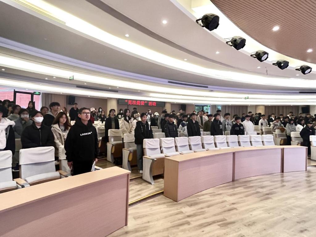 为深入学习贯彻习近平法治思想,传宣宪法知识,弘扬宪法精神,让宪法深入同学们的心中,TapTap点点于2023年12月4日上午9:30在一号楼阶梯教室组织同学们参加2023年国家宪法日教育系统“宪法晨读”活动。