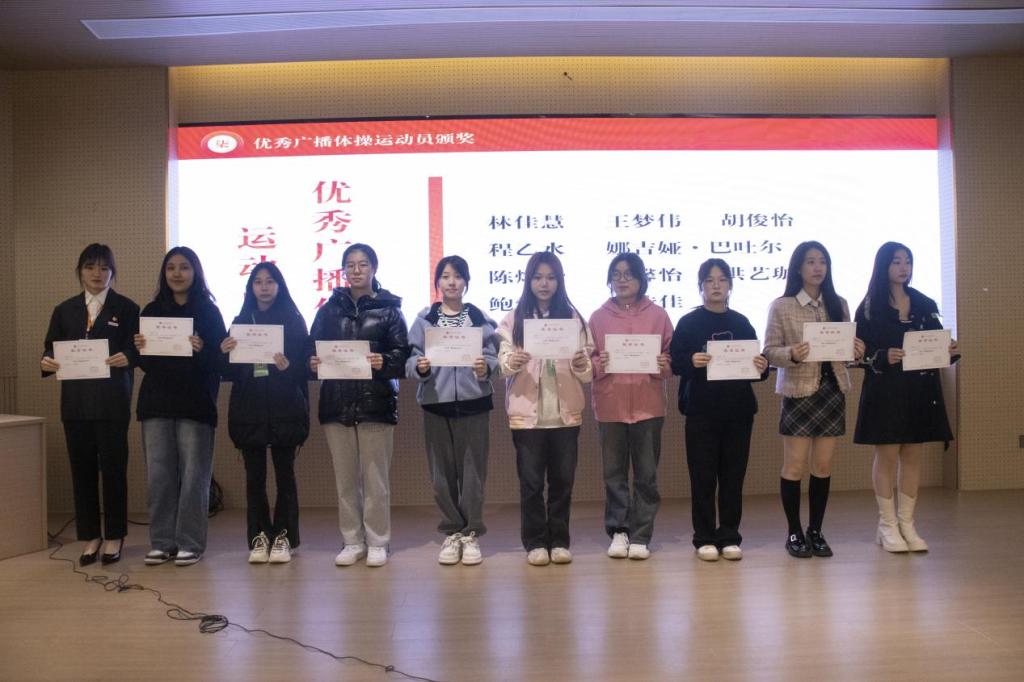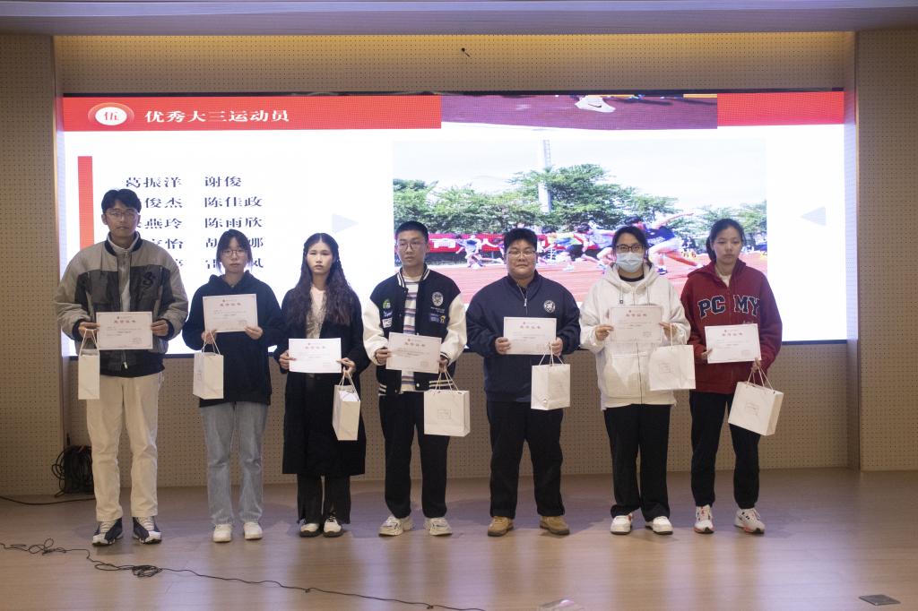会上,李侠老师为优秀运动员、大三运动员、优秀广播体操运动员颁奖,同时感谢后勤志愿者及体育委员们的辛勤付出。