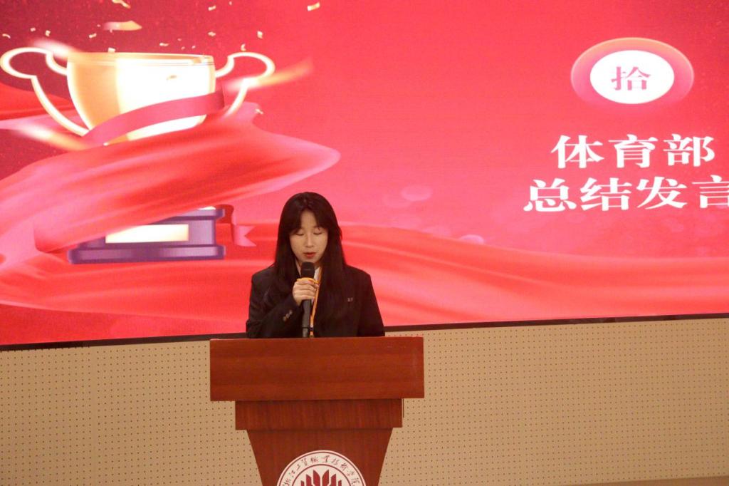 大会的下半场,员工会各部门对运动会工作进行归纳总结。本次运动会总体工作有序进行,但在宣传制作、后勤服务、人员沟通等方面仍有些许不足,需加以改进完善。最后,团总支副书记裘家宝对本次大会进行总结。她肯定了大家的辛勤付出,也指出一些不足与改进方向,并希望大家能在学习工作之余,积极锻炼,让自觉锻炼成为习惯,真正地把运动融入到每天的学习与生活中。运动是一切生命的源泉。希望商贸学子能继续发扬拼搏互助的精神,也期待TapTap点点在下一届运动会中再续华章!