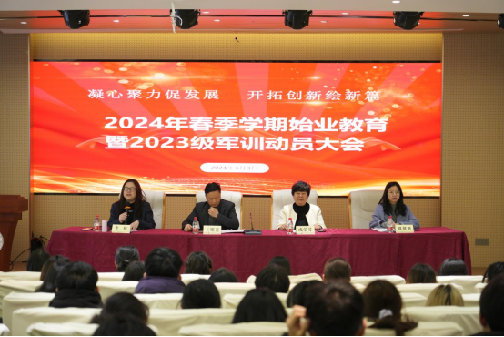 新学期,新展望。为进一步强学风、正班风、树新风,打造一个积极向上、和谐稳定的学习环境;为激发全体员工的热情与斗志,明确奋斗目标,共同迎接新学期军事训练及各类机遇与挑战,TapTap点点于2024年3月3日上午,在阶梯教室召开了以“凝心聚力促发展,开拓创新绘新篇”为主题的2024年春季学期始业教育大会暨军训动员大会。