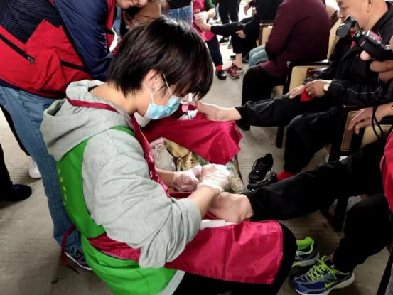 理发师们手法娴熟,轻轻的为老人们修剪头发,每一个动作都格外细心。她们一边理发,一边与老人们交流,询问他们对发型的喜好,确保每一个老人都能得到自己满意的发型。理完头发后,老人们看着镜子中自己精神焕发的模样,脸上露出了开心的笑容。负责剪指甲的志愿者们也同样的认真细致。志愿者们深知老人行动不便,指甲容易滋生细菌,因此格外注重卫生和安全。在戴上手套和准备好工具后,他们小心翼翼地为每一位需要修指甲的老人们修剪指甲,确保不伤害他们的皮肤。同时,他们还耐心地为老人们讲解日常护理指甲的小知识,帮助他们更好的照顾自己。