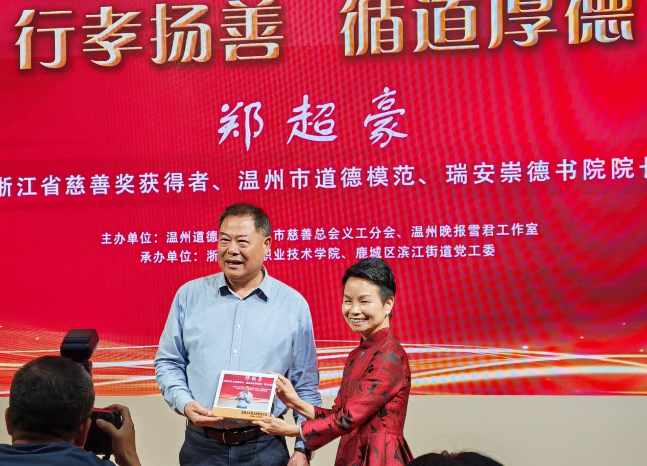 浙江省慈善奖获得者、温州市道德模范、瑞安崇德书院经理郑超豪以自己的早年经历为切入点,介绍了他在父母的深刻影响下,创办了多项崇德公益系列事业。他结合自身经历,从“行孝”、“扬善”、“循道”、“厚德”四个方面弘扬了其优秀美德。