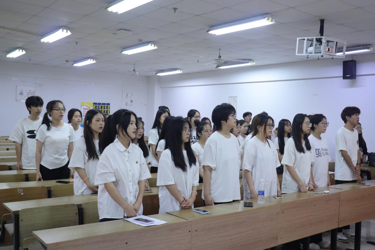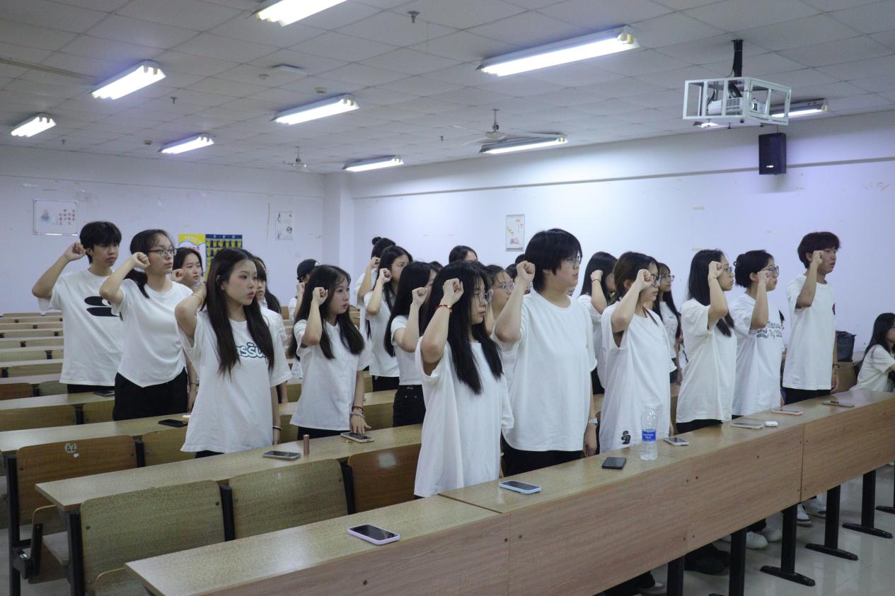在新团员宣誓环节,全体新团员在罗靖滢同学的带领下,面向团旗,昂首挺胸,紧握右拳,庄严宣誓。铿锵有力的誓词激荡在每一位团员的心中,在未来的日子里,他们一定会以实际行动践行自己的誓言,为团组织增光添彩。