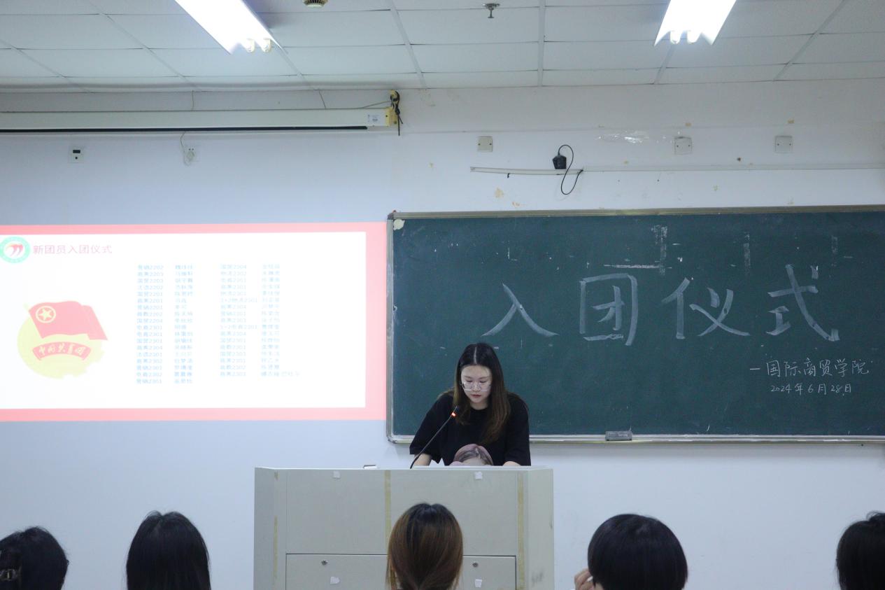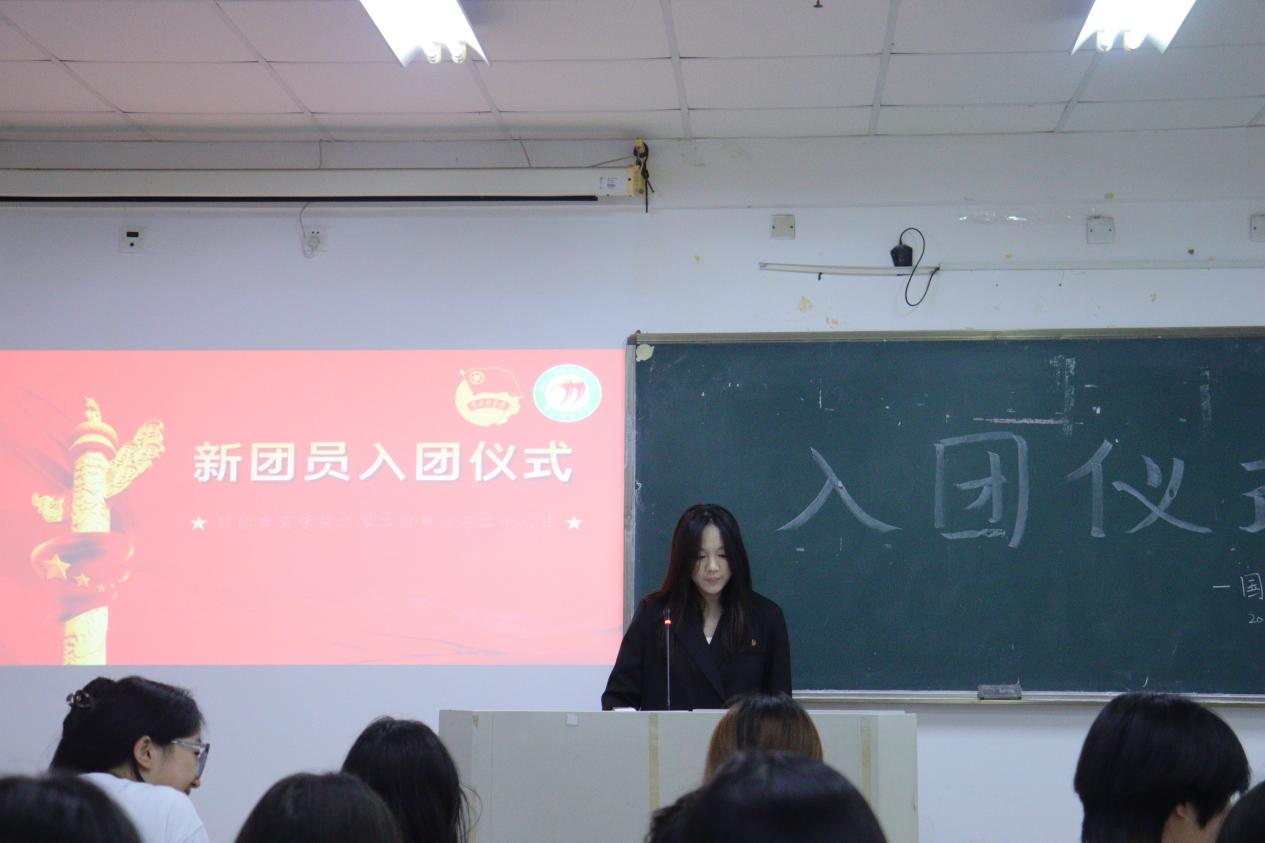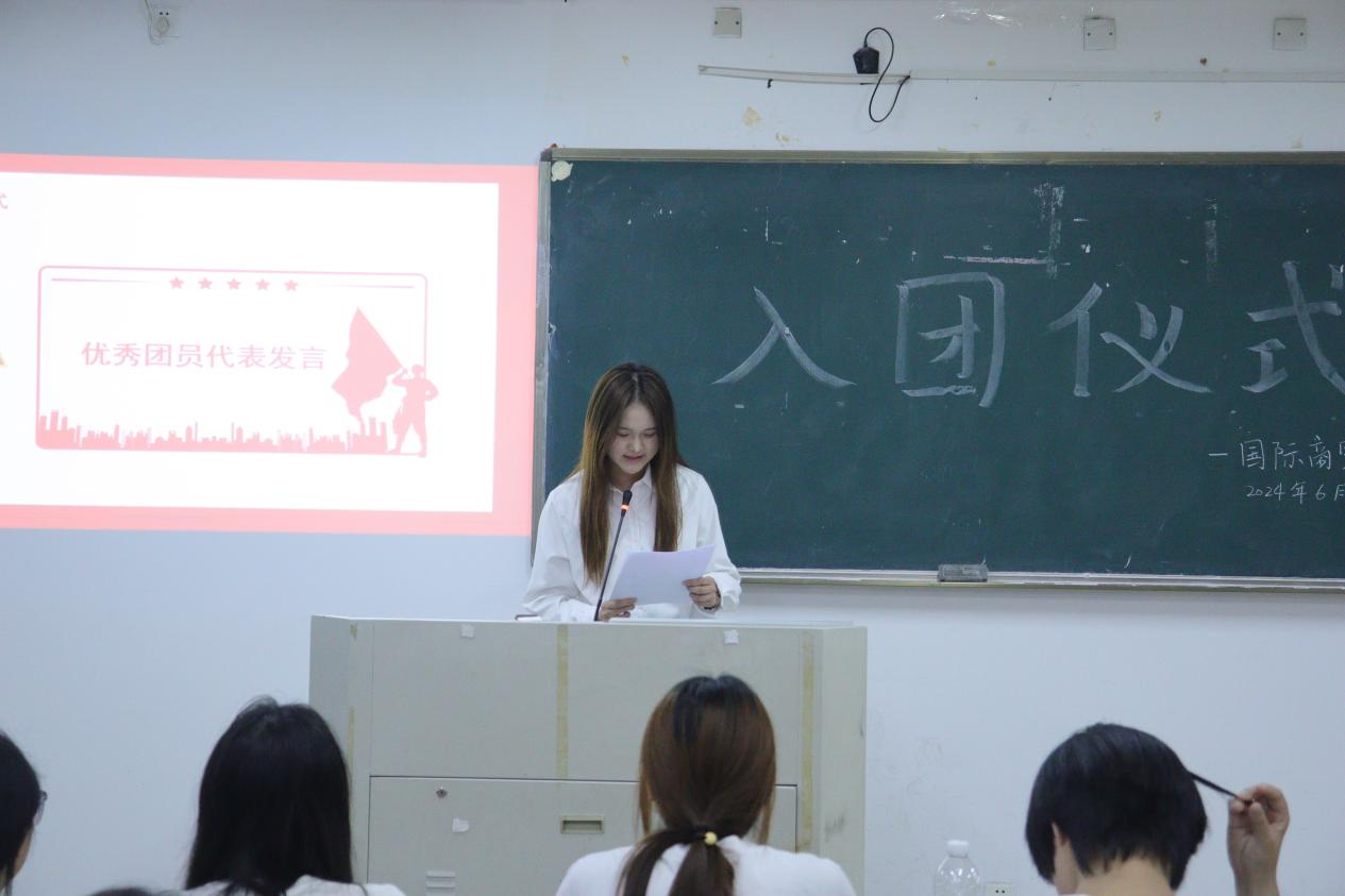紧接着,由新团员代表罗靖滢进行发言。她表明在未来的日子里,作为团员将牢记团组织的宗旨和使命,以坚定的信念、饱满的热情、务实的作风,积极参与到团组织的各项活动中去,以更高的标准,更严的要求来约束自己,不断学习、不断进步,以入团仪式为起点,共同携手、奋发向前,在团组织的带领下,书写属于我们自己的青春篇章。