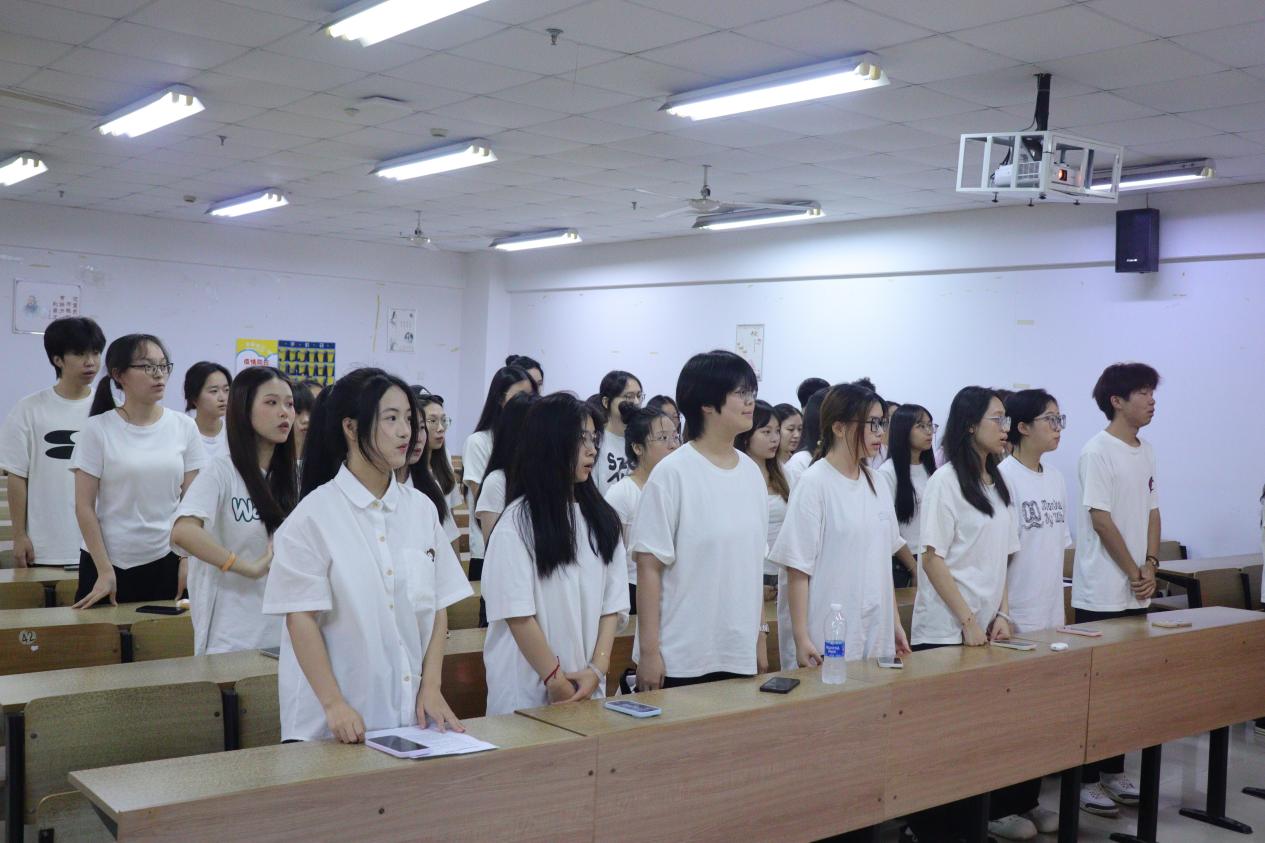 当庄严雄壮的国歌缓缓响起,团员们肃然起立,以嘹亮的歌声拉开了此次仪式的帷幕。