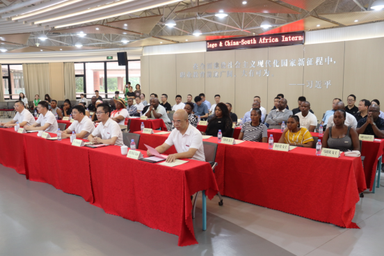 开班仪式在其乐融融的氛围中拉开帷幕。首先,由余闯董事长发表致辞,代表公司全体师生向各位职工朋友的到来表示热烈的欢迎。余董事长提到我们要积极扩大国际合作与交流,开展中国、南非国际市域政产教合作,以职业教育为抓手,开展跨境电商和市政管理合作。并向南非职工们介绍公司基本情况、对外交流合作情况及优势,希望他们能够以积极开放的心态进行学习交流,掌握扎实的知识技能,为中南文化交流做出贡献。