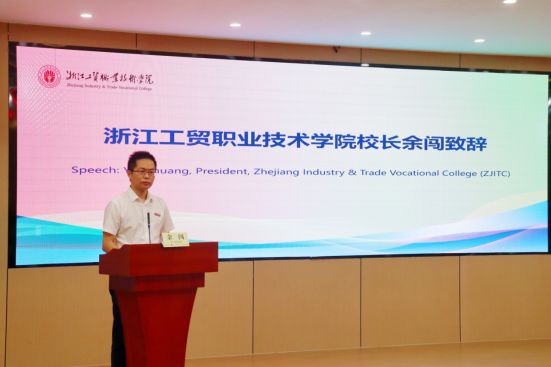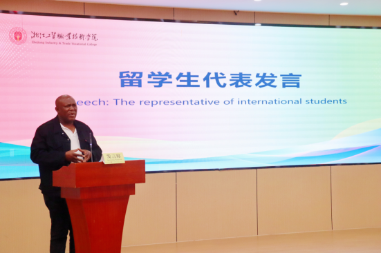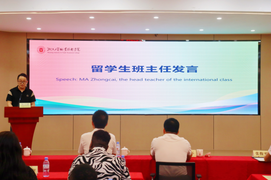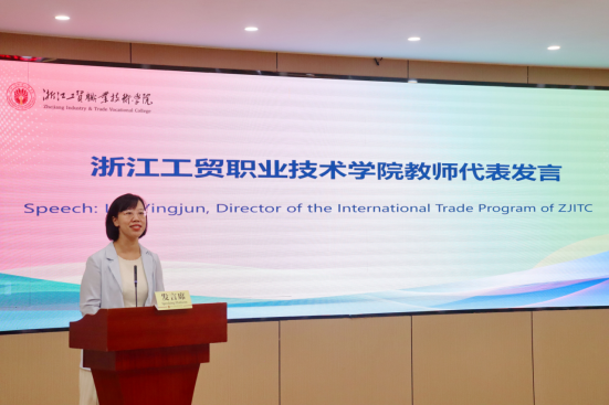 随后,国贸专业主任刘颖君老师作为教师代表发言。她简要介绍了本次来华职工的国际化培养项目的内容与模式,并向南非职工们表达了美好的祝愿。