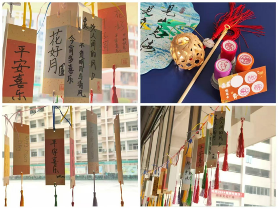 在DIY体验区,同学们拿起材料,发挥创意,亲手制作发光小灯笼与书签。小灯笼在灯光的照耀下,散发出柔和而温暖的光芒,如同夜空中最亮的星,点亮了每个人的中秋梦。书签上,同学们或书写祝福语,或绘制精美图案,每一枚都承载着对家人、朋友的思念与祝福。