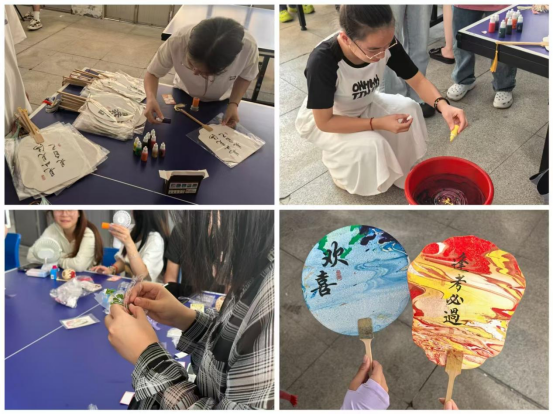 漆扇体验区则是另一番风景。各式各样的漆扇陈列于此,静候同学们用色彩为其赋予生命。同学们用心挑选喜爱的色彩与图案,一笔一画之中,既展现出他们对美的追求与理解,又传递出对传统文化的敬重与传承。一把把色彩斑斓、风格各异的漆扇在同学们的手中诞生,它们不仅是中秋的纪念,更是同学们情感与才华的凝聚。