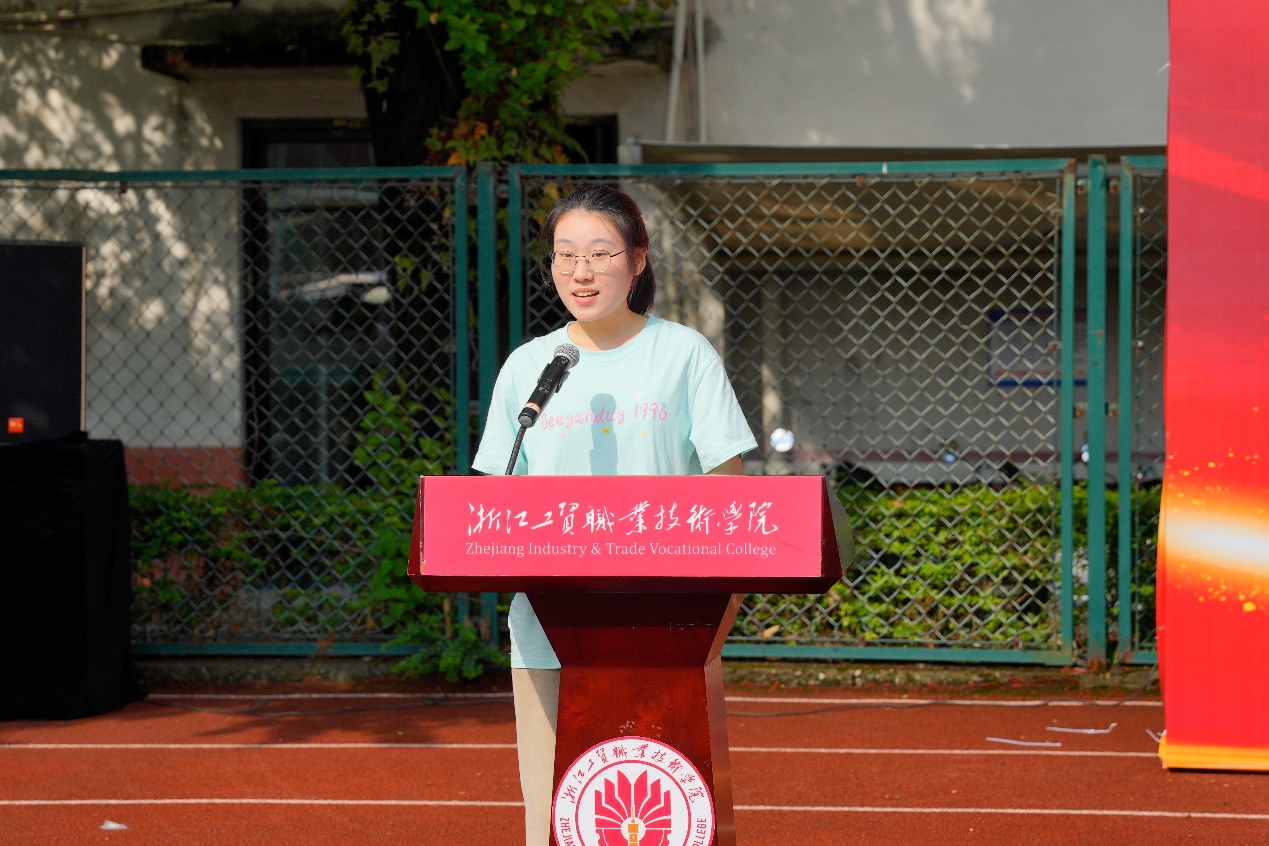 老生代表裘家宝发言,面对新生们入学后最关心的学业问题,她以自身经历为例,分享了自己大学期间的学习经验和成长感悟,同时鼓励新生明确目标、勇敢试错,积极参与校内外各类活动来丰富老员工活,为自身的未来奠定坚实基础。生动的故事和实用的建议不仅寄托着老生的关心,也代表着商贸学子的传承。