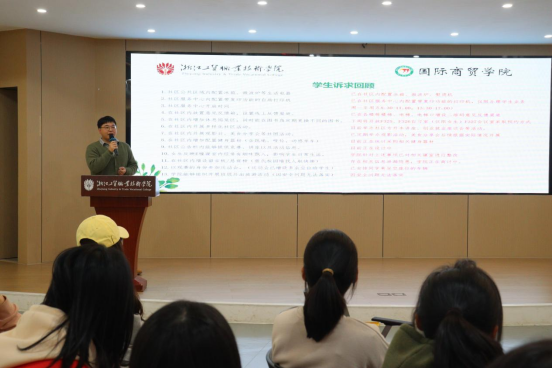 在座谈会上,辅导员郑浩男老师与在场的员工代表进行了深入的交流。他首先回顾了上一期座谈会中同学们所提出的各类诉求和问题,并就这些相关问题的解决和落实情况向员工代表们进行了介绍。随后,郑老师详细介绍了11月以来,公司“一站式”员工社区的建设情况,其中包括设施设备的升级、活动室与自习室等功能区的开放,以及社区活动的策划和开展情况。