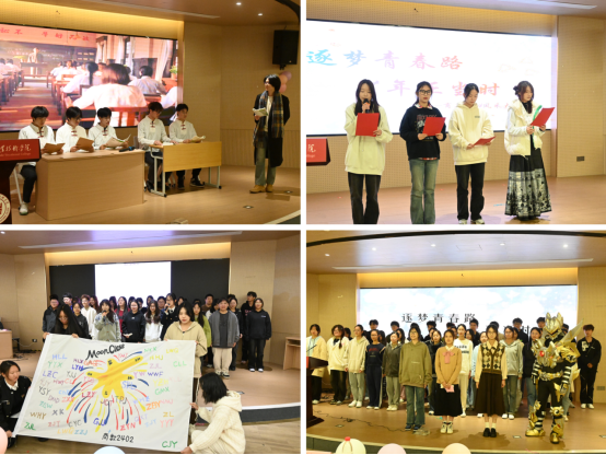 在才艺展示环节,各班级更是各显神通,精彩纷呈。3+2物流2401班以“五四运动”为背景,深情演绎了先辈的英勇事迹,唤醒了沉睡的历史记忆,彰显了新时代青年对五四精神的传承;商英2404班的歌曲《紫荆花盛开》则用悠扬的旋律表达了他们对紫荆花傲然绽放的赞美和对祖国的深情厚谊;国贸 2401 班通过自导自演的情景剧视频进行独特的班级风采展示以及对老师的深情告白,展现了班级的团结和友爱;商数2401班带来的《最美的太阳》更是声情并茂,深深打动了在场的每一位观众。