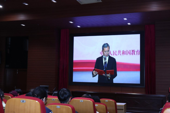 随后,同学们在领读人的带领下,一字一句、铿锵有力地诵读了宪法中的部分条款。他们的声音回荡在学术报告厅的每一个角落,充满了对国家与宪法的热爱与敬重。