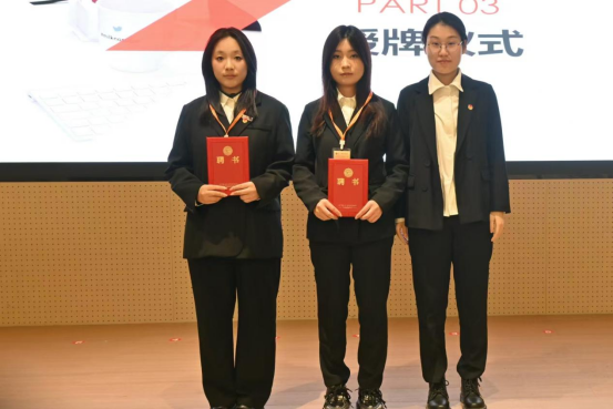 紧接着,授牌仪式正式开始。学长学姐们逐一为新部长与新干事颁发聘书并授牌。大家的脸上洋溢着自豪与喜悦,眼神中闪烁着对未来的无限憧憬。这不仅是一次简单的授牌仪式,更是一次精神的传承与责任的交接。