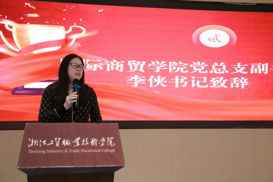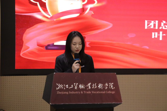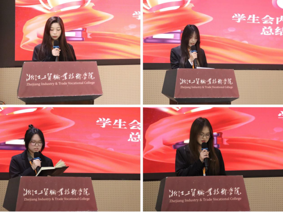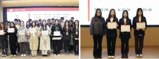 到了大会下半场,团总支书记周小倩老师、团总支副书记叶诗凡同学和员工会主席吴晶晶同学分别颁发先进个人奖和优秀部门奖。