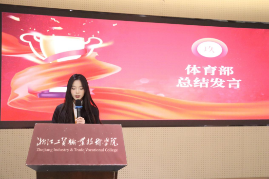 随后,体育部部长明堰同学对运动会进行了总结。她指出,运动员们以绝佳的竞技状态和饱满的热情投入比赛,展现了顽强拼搏的体育精神;员工干部们则坚守岗位,全力做好后勤保障与服务工作,展现了和谐高效的团队合作精神。