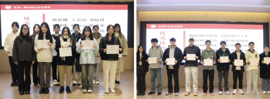接着,团总支书记周小倩老师、体育部部长明堰同学及副部长华颖云同学分别为优秀团体操运动员、优秀体育委员颁奖,感谢各位同学为运动会的付出。