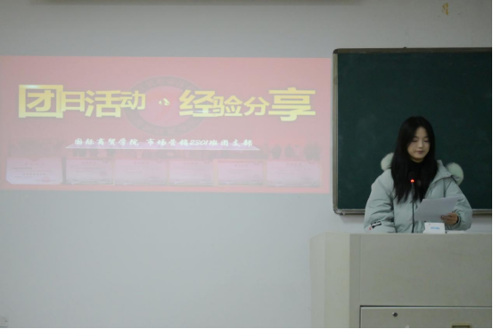 随后,罗靖滢同学作为23级优秀团支书进行了经验分享。她介绍了自己团支部的基本情况和团日活动的开展历程及其成果。她带领着其团支部秉承着团结、勤奋、进取的精神,积极开展各类团日活动,并两次获得校团委推优。此外,她还详细地分享了团日活动记录表的制作要点,为在场的团支书们提供了具体的指导。