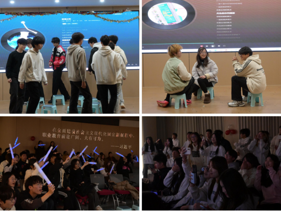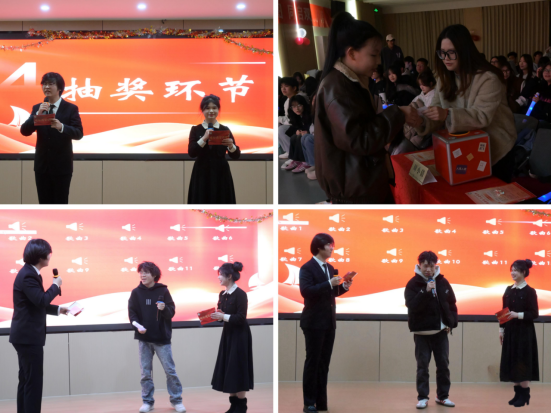 互动环节中,周小倩老师从写满祝愿的盒子中随机抽取数张纸条,选出了晚会的幸运观众。随后的猜歌名环节紧张刺激,同学们积极参与,现场气氛热闹非凡。