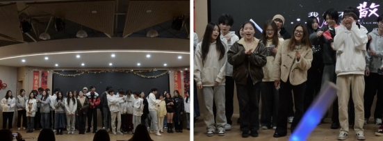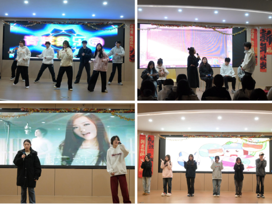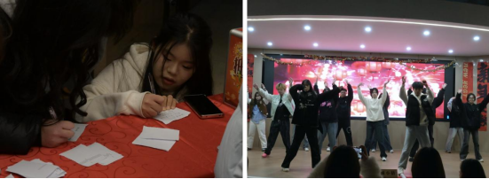 活动伊始,同学们陆续入场签到,并满怀期待地写下新年祝福,投入抽奖箱。伴随着欢快的音乐,实践部带来开场舞《相亲相爱》,使现场氛围迅速活跃起来。