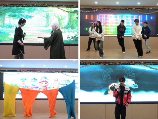 在元旦文艺汇演的舞台上,组织部带来充满活力的舞蹈《青苹果乐园》,他们洋溢着青春的舞步,充分展现了活力与热情;党务部的小品《上学那些事》,以幽默诙谐的方式演绎着校园生活的趣事,引得观众阵阵欢笑;紧接着,歌曲《另一个天堂》的优美旋律响起,大家沉浸在美好的氛围中;青年志愿者协会带来舞蹈《开心超人大战喜洋洋》,以欢快的节奏和精彩的表演将现场气氛再次推向了高潮。