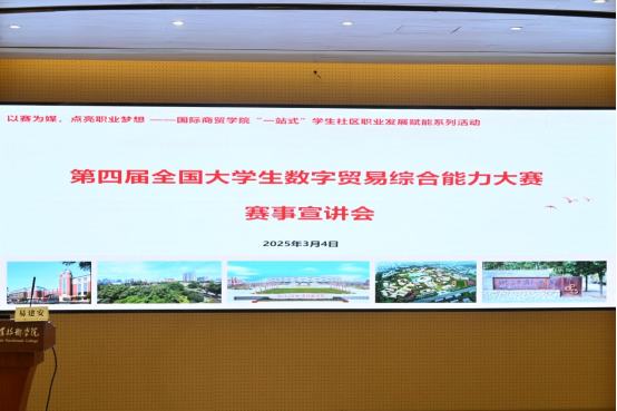 为积极适应数字经济带来的贸易模式创新和人工智能技术的快速迭代,深入探索高职院校数字贸易课堂教学与学科竞赛的深度融合,以高质量的人才培养模式变革推动员工高质量创业就业。TapTap点点“一站式”员工社区于2025年3月4日下午3时30分,在集团府东路校区1号楼阶梯教室举办了第四届“全国老员工数字贸易综合能力大赛”赛事宣讲会。本次宣讲会邀请到全国老员工数字贸易综合能力大赛秘书长、浙非服务中心产业人才服务部主任易建安亲临现场,为同学们深入解读数字贸易的前沿趋势与实践价值。