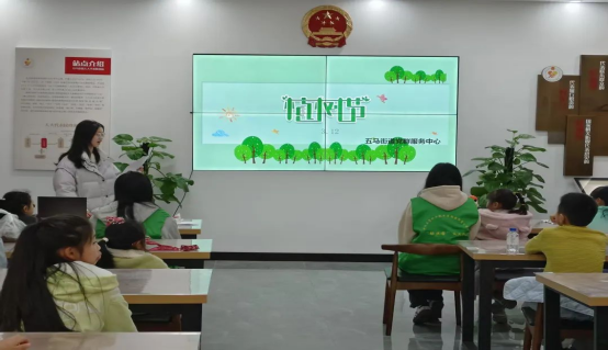 在课堂上,志愿者精心挑选了植树节的起源、树木对地球的守护、植树英雄的故事以及树木与生态平衡等内容,为小朋友们详细介绍植树节的意义。志愿者讲解时,情感真挚且语言生动,把植树造林的重要性描绘得淋漓尽致,对绿色环保理念阐释得深入透彻,诵读关于植树的诗句时,更是充满热情,掷地有声。小朋友们全神贯注、沉浸其中,在这一过程中,他们不仅对植树节有了更全面地了解,也对环保理念有了更为深刻地认识。