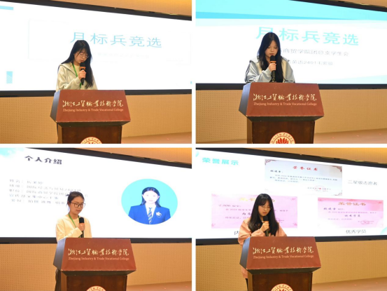 在热烈的掌声中,大会进入月标兵竞选环节。竞选人们在各自部门中表现出色,积极投身于各类活动,展现了卓越的能力。在台上,他们围绕工作成果、活动经历、志愿活动及未来展望等方面,充分展示了个人的成就与优势,为在场的干事们树立了良好的学习典范。