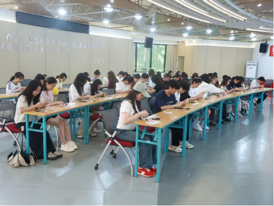 活动开始前,实践部干事们按照活动方案,将预先准备好的材料包分发给每位同学。干事们对风铃的制作流程进行了清晰简明的讲解,并做了规范的示范操作。随后,同学们全身心地投入到风铃的制作环节之中。